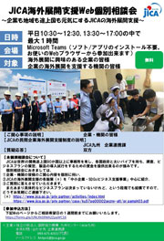 自社事業の海外展開に関心を持たれる民間企業の皆様に、無料でWeb個別相談会を常時開催しております。
