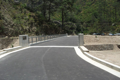 国土の大部分が山岳地帯のブータン。道路交通は物流の唯一の手段であり、同国の最も基礎インフラです。しかし、国道上の多くの橋梁は1970 年〜80年代に架橋され、損傷や老朽化が著しく、崩落の危険性も指摘されています。日本は、1997〜1998年に橋梁調査に協力して架け替えが必要な橋を特定し、中でも特に緊急性の高かった橋梁建設を無償資金協力によって継続的に支援してきましたが、今回は、インドと国内の開発地域を結ぶ重要な幹線道路である国道5号線上の6つの橋について、仮設橋から永久橋へ架け替えを支援しました。
