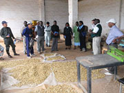 林木育種センターチームは、KEFRIキツイセンターを中心に、プラス木からの接ぎ穂の採集、台木への接ぎ木、苗畑の管理に至る一連の作業の指導を行いました。これに先立って2012年7月にケニア側の4名が日本に研修に行っていたので、宮下氏と山口氏を補助しながら他の作業員に指導するなど、作業はスムーズに進められました。また、同チームは、キツイ地区とキブウェジ地区での採種園候補地の現地を確認し、アドバイスを行いました。