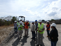 施工監理に係るケーススタディの開始に際し、2016年9月29日に小泉専門家(道路施工監理)と坂中専門家(災害復旧)が実施予定の工事現場を視察しました。工事現場の現状や課題を把握するために、工事を担当している施工業者と意見交換したほか、工事中の作業員にもヒアリングを行いました。
