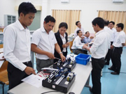 本年度当プロジェクトでは、電気の立壁専門家が中心となって、富士電機(株)およびHao Phoung社との共同開発により、電気保全系作業検定盤を製作しました。この検定盤は、訓練用にできるだけ台数を購入できるよう、日本から購入するより安価に、また、修理やアフターサービスが現地で簡単にできるように考え、現地及び隣国で確実に調達できる資機材により作製されました。