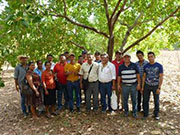 2018年2月28日~3月2日に農牧省農牧科学技術局の協力により乾燥地農業に関する視察研修を実施しました。当プロジェクトのパイロットコミュニティのうち、主に乾燥地に位置するロサ・デ・アブリル、サマジャレ、ロマ・ベルデの各コミュニティの生産者代表、オロポリ市・グイノペ市の環境担当職員、ユスカラン財団職員、環境省生物多様性局職員計12名がホンジュラス国南部地域のルイス・ランダ農業学校(ナカオメ市)、農牧省ルフォサ農業試験場(チョルテカ市)、カシューナッツ生産協同組合(ナマシグエ市)を訪問し、ゴマや落花生等の乾燥地に適した作物の栽培技術や、太陽光発電をエネルギーとした灌漑技術、生産物の有機認証取得と輸出の取組み等について学びました。