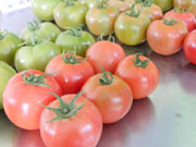 近代市場への出荷に向けて、品質別に仕分けされる桃太郎トマト