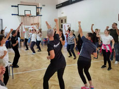 14日午後、モスタル市スポーツ協会(以下、SSGM)と共催で、市内の幼稚園教員7名、小学校低学年教員25名(うち特別支援学校体育教師2名)を対象に教員セミナーを実施しました。SSGMと教育研究所は年に2回、ネレトバ県内の体育教員へのセミナーを提供していますが、今回ターゲットを幼稚園教員と小学校低学年教員としたのは、該当する多くの先生たちが園児・児童たちに体育を教えるための十分な知識と実技指導技術やそれらを発展させるための研修等の機会が不足しているという現状が、プロジェクトとSSGMでは課題と捉えられているからです。