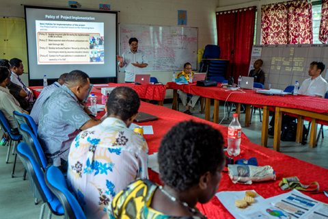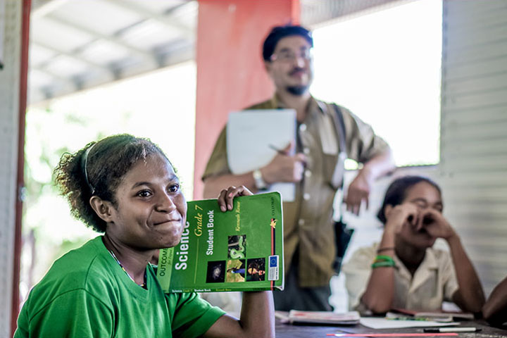 パプアニューギニアでは、教育へのアクセスと質の改善のため教育改革が進められており、教育無償化政策などにより基礎教育の純就学率は改善してきています。他方で教育の質の面では、従来の方針では教科書が存在しないことから教員が授業をしづらいなど批判が高まり、2014年に実情に合った新たなカリキュラムの導入および教科書の開発を進めることとしました。この協力では、教科書作成にかかる知見・経験が不足する同国において、初等第3~6学年の算数・理科の教科書と教員用指導書の開発を支援します。これにより、それら教科書などを全国に導入するための準備が整い、同国における教育の質の向上に寄与します。