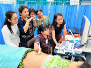 5月23日マンダレー中央婦人病院、5月24日ヤンゴン第2医科大学にてレクチャーおよびハンズオンセッションが行われました。ハンズオンセッションでは、実際に新潟大学の指導教員がオブザーバーとして参加し、的確な超音波診断技術指導が行われたため、参加者の真剣な表情が強く印象に残りました。2017年度研修員が参加者に指導する様子から、研修員の帰国後の超音波診断技術の大きな向上が見られており、日本での研修の効果が明確であることが確認されました。研修員の今後のさらなる活躍が期待されます。