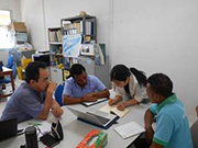 主な活動内容として、機械学科においては、研究論文の作成指導、ヤシ酒の生産工程、工作機械の保守管理、土木学科では、測量機器の実習および工学部紀要原稿作成指導、電気・電子学科においては機材を導入しての学生実験授業の改善、送電線実習装置保守、情報学科では道路調査ソフトの開発、通信技術に関する指導、最後に地質・石油学科では、顕微鏡を用いた解析実習およびサンゴ礁地質学のサンプリング指導などが行われました。