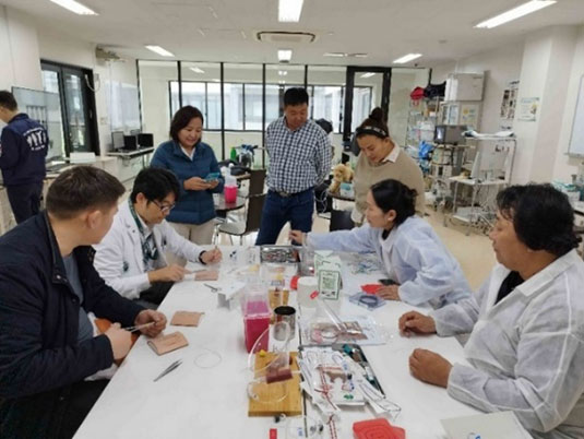 モンゴル生命科学大学獣医学部では一学年に100人以上の学生が在籍し、実習室のスペースも十分ではないことから、効率的、効果的な実習を実施することは困難で、社会で活躍できる獣医師の育成に向けて、ソフト、ハード面での教育体系の大きな変革が必要です。その一環として動物モデルの導入は上述のとおり有効かつ緊急の課題と判断し、北海道大学獣学部の基礎、臨床系の先生方と相談しながら2023年度の研修を組み立てました。