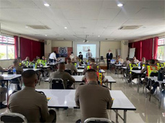 2022年11月21日から23日の3日間、本プロジェクトの第1年次のパイロット県であるナコンラチャシマ県の警察官を対象に、交通事故捜査と交通取締りの研修を実施しました。タイは年中暑く屋外での長時間の研修は難しいこともあり、ナコンラチャシマ県内にある警察の研修施設にて実施しました。第1日目は、日本の交通戦争の紹介、交通事故捜査、さらに交通取締りの講義、第2日目に一時停止無視違反の取締り方法の実地研修、第3日目に速度超過違反の取締り方法と交通事故捜査の実地研修を行いました。