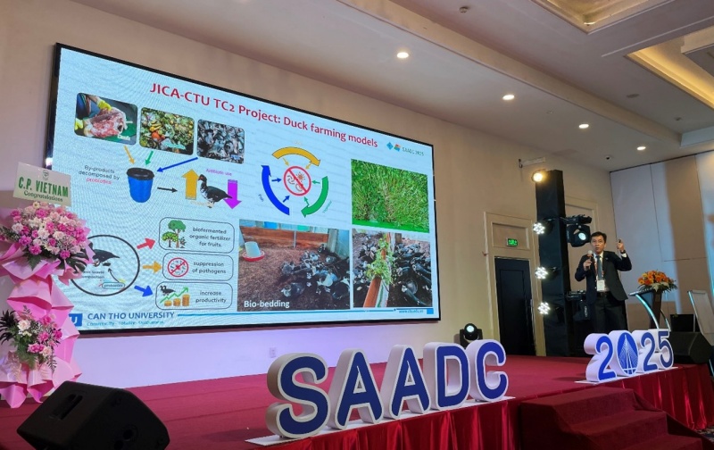 また、畑生教授には、今回の出張期間中に、モデル3研究のCTU側主任として活躍頂いている農学部副学部長のNguyễn Trọng Ngữ教授らが主催のSustainable Animal Agriculture for Developing Countries (SAADC) 2025にもご参加いただきました。会議では、ご自身の研究内容をご発表いただきました。