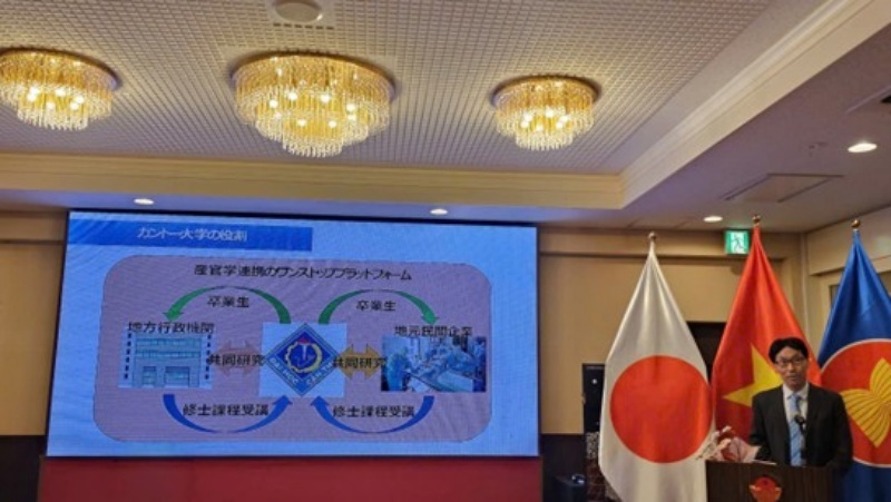 一つ目は、ベトナム農業環境省が駐日ベトナム大使館で開催した「ベトナムのメコンデルタ地域におけるグリーン成長に資する高品質・低炭素米生産の投資促進会議」への参加でした。ベトナム農業におけるアグリテック推進支援ビジネスにご尽力されているソリマチベトナム社様の大きなサポートで実現したこの会議において、JICAプロジェクトを紹介すると共に、会議テーマであるメコンデルタの稲作におけるカントー大学(CTU)の果たす重要な役割を説明しました。加えて、参加した多くの日本企業とネットワークを構築し、今後のCTUとの産官学連携や各種共同研究の実現に向けてアピールすることができました。