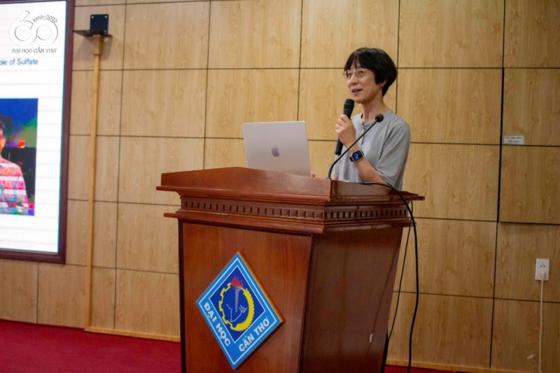 そして翌6日には、亀井副学長による特別講演がCTUで実施されました(様子はCTUのFacebookでも伝えられています)。これまでベトナムの、そしてCTUの多くの留学生を受け入れて頂いた亀井先生から、教え子でもある多くのCTU学生の研究内容、成果を紹介頂きながら、協力の歴史を振り返り、そしてまたこれからの協力についてもお話を頂きました。それらの協力、交流の歴史を経て、現在KITを卒業しCTUで教員を務める方は13名にも上ります。JICAプロジェクト実施にあたりましても、これまで多大なご協力を頂いている京都工芸繊維大学、そして亀井副学長には、改めて感謝申し上げます!