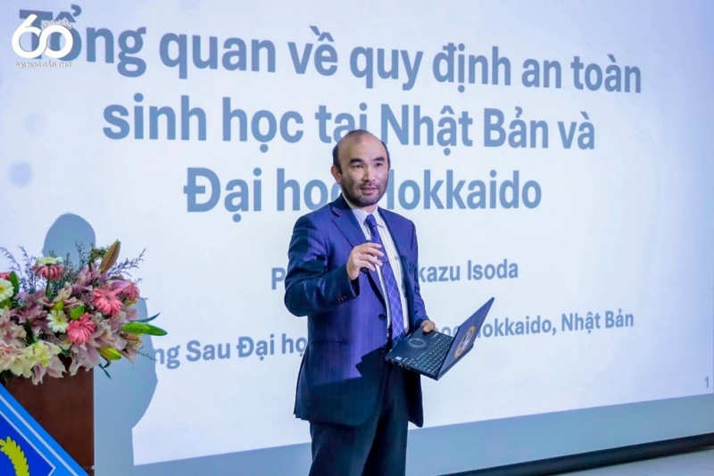 このたび、北海道大学の磯田典和准教授にご出張いただき、BSL3の本格運用を見据えた各種試験に関する技術指導を行っていただくと共に、3月10日にはBSL3の運用、活用をテーマとしたワークショップを開催しました。ワークショップでの発表では、北海道大学での経験も踏まえ、大学におけるBSL3の運営管理、研究や教育、そして社会貢献において大学が果たすべきミッションに関してもお話しいただきました。さらにベトナム国内で既にBSL3を運用するホーチミン市パスツール研究所(同所のBSL3もJICA「感染症の予防・対応能力向上のための実験室の機能及び連携強化プロジェクト」の支援で完成)や中央診断検査センター第2拠点からも専門家を呼んで、多方面からの議論が行われました。