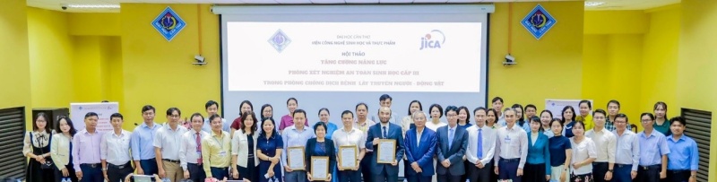円借款「カントー大学強化事業」では、カントー大学(CTU)でのバイオセーフティ・レベル3実験室(以下、「BSL3」)が整備されました。新型コロナウイルス感染症でも新型ウイルスへの対策が世界的課題として注目されましたが、メコンデルタ地域でも潜在的な脅威となっている鳥インフルエンザのような人獣共通感染症に対処するためにも、BSL3の役割は重要性を増しています。