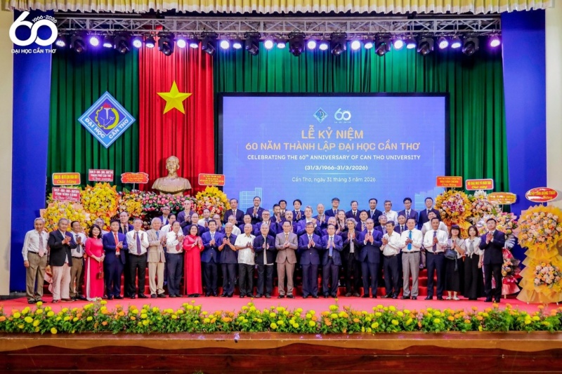 本プロジェクトのカウンターパートであるカントー大学(CTU)は1966年創立、2026年は記念すべき60周年になります。CTU創立記念日でもある2026年3月31日、学内では盛大な記念式典が行われました。ベトナム教育訓練省大臣及びベトナム各地から来賓が訪れ、JICAベトナム事務所、ホーチミン出張所からも式典に参加し、日本との協力も経て大きく成長したCTUの記念すべき一日を共に祝いました。