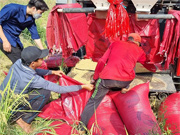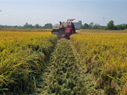 ロンアン省トゥトゥア郡ミーラック村の稲田にヤンマー社のコンバインを導入