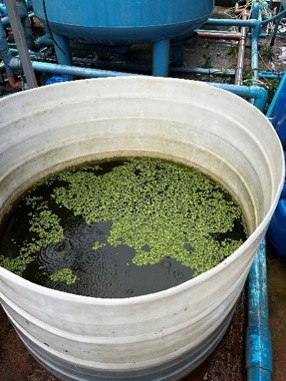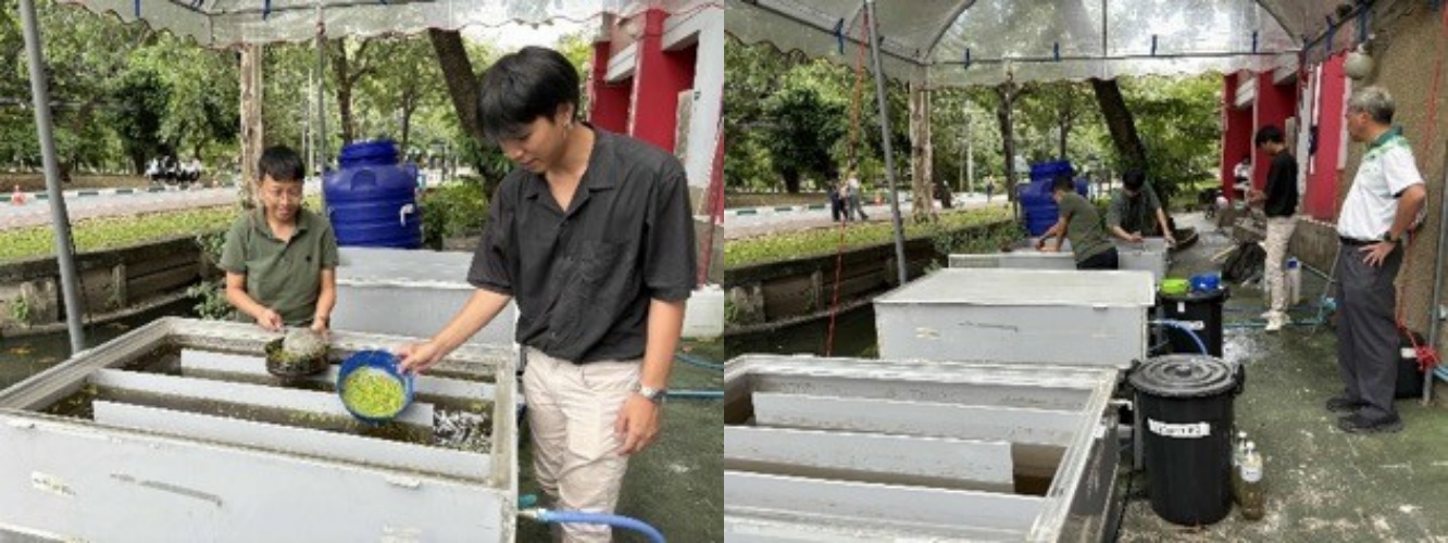 At Kasetsart University, we carried out maintenance on the bench-scale demonstration test for duckweed wastewater treatment and discussed future tests.