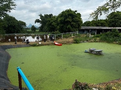 They visited a pilot site of duckweed-based wastewater treatment ponds at a pig farm in Lop Buri province to confirm the status of duckweed growth and reviewed the ongoing greenhouse gas emission measurements. On this occasion, they also had the opportunity to observe power generation using biogas produced from the covered lagoon treatment of piggery wastewater. It was considered that utilizing duckweed biomass produced in the course of wastewater treatment for methane fermentation on-site could further contribute to decarbonization.