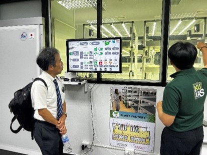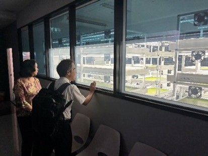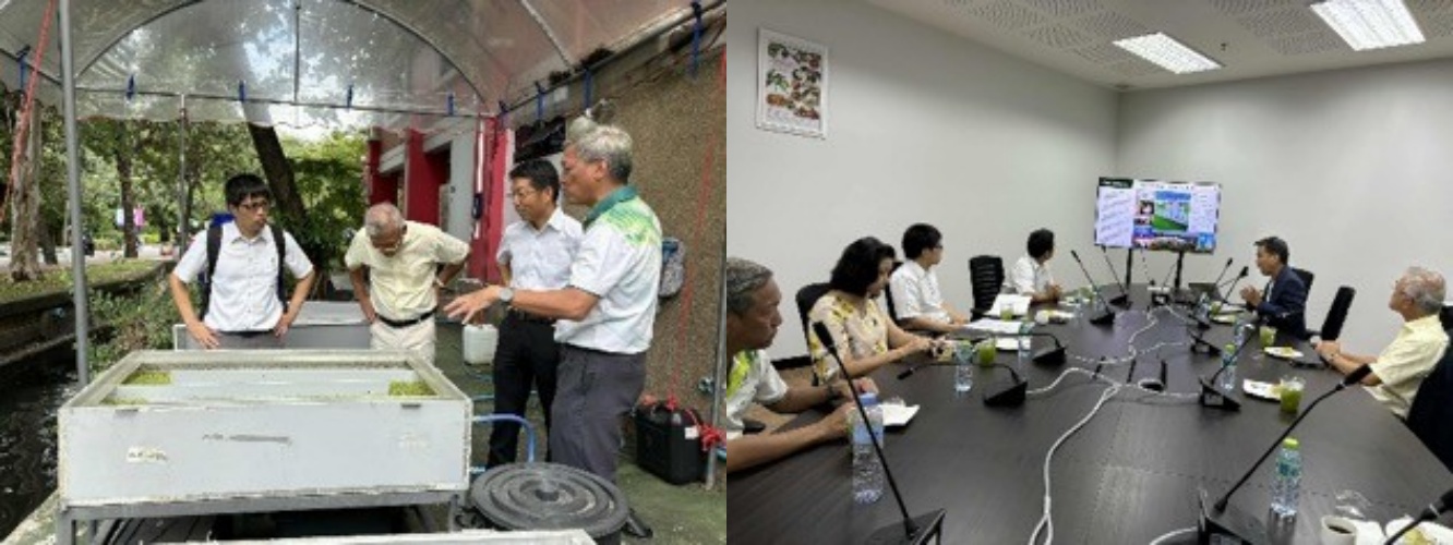 Japanese team then moved to Kasetsart University to observe a bench-scale demonstration test of duckweed wastewater treatment installed and operating on campus, confirming that wastewater treatment and duckweed biomass production were satisfactory. They also visited duckweed plant factory in DHbRC. Besides, received an explanation regarding the development of a database (catalog) of duckweed-associated microbes at Kasetsart University.