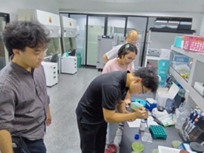 小山准教授、伊藤助教、村中助教、カセサート大学のDr. EkpahanおよびDr. YosapolがDHbRC (Duckweed Holobiont Resource & Research Center)のデータおよびサンプル(DNAおよびウキクサ植物)の維持管理方法と活用方法について話し合いました。データベースにあるウキクサ株で、現在までに消失したものについてもDNAサンプルは保存されているものが多くあるため、DNAサンプルの情報もデータベースに載せることで合意しました。また、植物サンプルについては、タイ国内の研究者(大学関係者)への積極的な利用とその成果発表を促進する予定です。また、タイ国内でのウキクサ研究開発促進の一環として、タイ国内産のウキクサ植物の遺伝子発現解析を進める計画を話し合い、将来的に日本側でも積極的に支援することを確認しました。