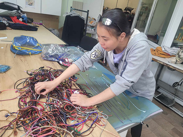 指示に従って色分け作業をするエルベグザヤさん