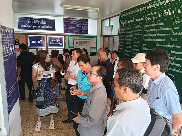 The Lao PDR team for hospital management comprised a representative from the Department of Planning and Finance (DOPF) and the National Health Insurance Bureau (NHIB) of MoH, representatives from four southern provinces, Japanese experts, and National Staff of the QHCF Project. During the mutual visit, representatives from Thailand's NHSO, along with participants from Lao PDR, first visited district hospitals and health centers in Champasak Province, Lao PDR. Subsequently, all participants traveled to Ubon Ratchathani Province, Thailand, where they visited district hospitals and engaged in training and discussions in a conference room. Through these activities, discussions were held regarding the similarities and differences between the health insurance systems, accounting, and hospital financial management practices of both countries, as well as the related systems. The discussions also covered points that could be adopted by both sides. On the Lao PDR side, further discussions were held on how to collaborate on quality improvement activities in healthcare services and how to effectively implement related systems.