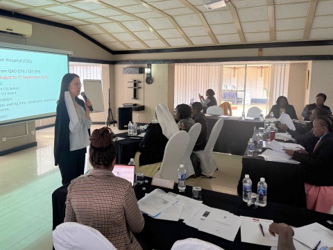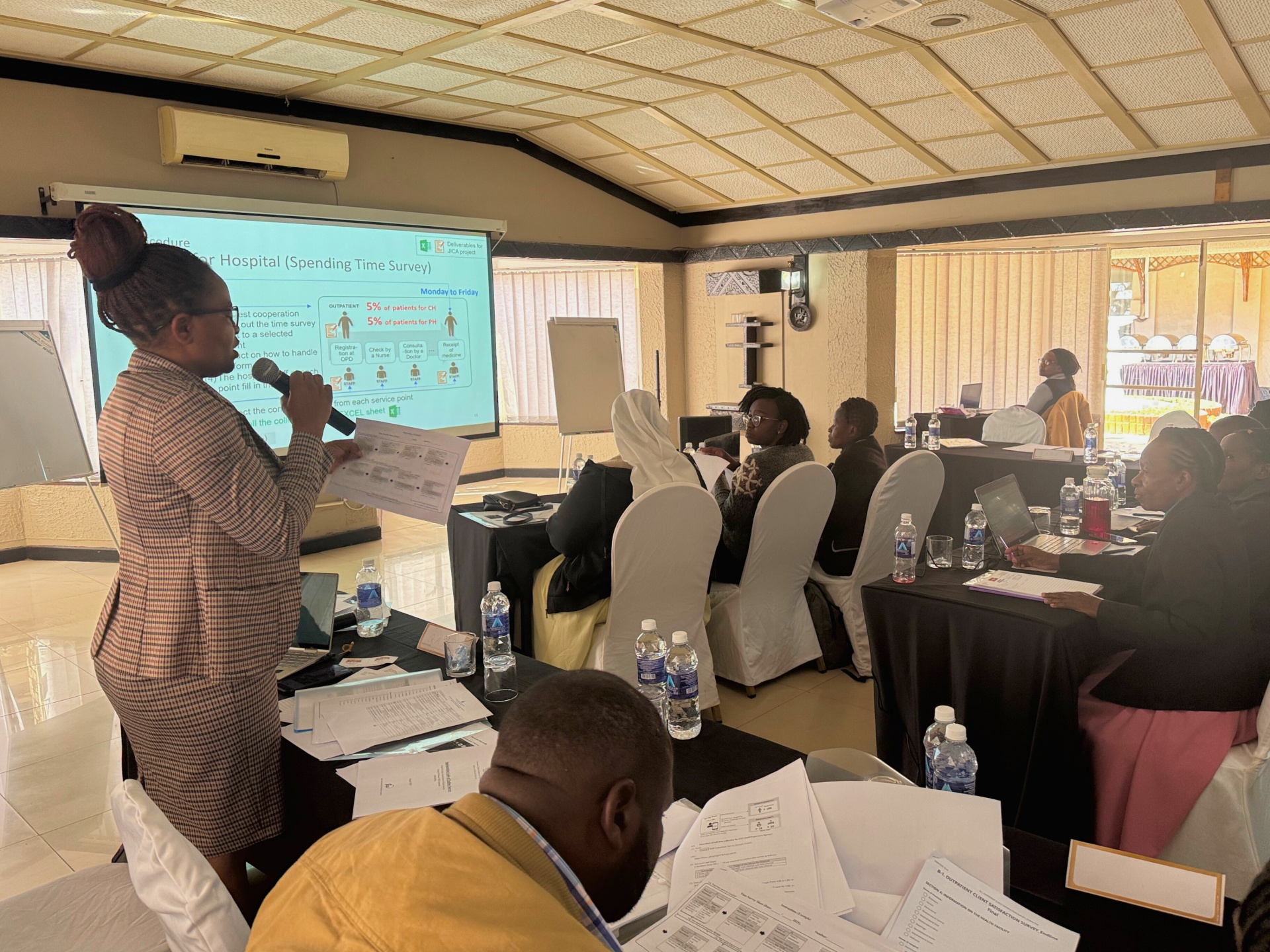 Quality Assurance (QA) Officer from Quality Assurance and Patient Safety (QAPS) Directorate, Ministry of Health and Child Care, explaining the patient waiting time survey