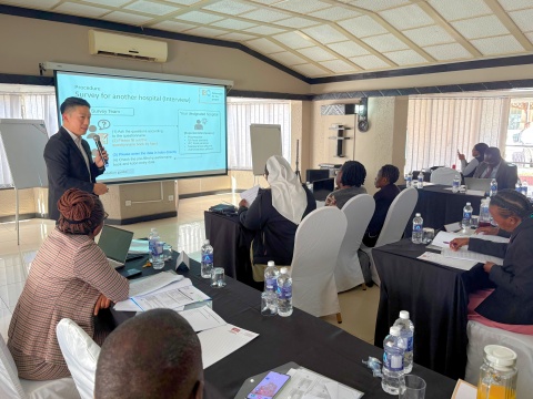 For the endline survey, as with the baseline survey, three surveyors from each of the 14 target hospitals, totaling 42 participants, were selected and attended this workshop. Through the workshop, they deepened their understanding of the outline of the endline survey, the survey items, the tools, and the data collection methods.