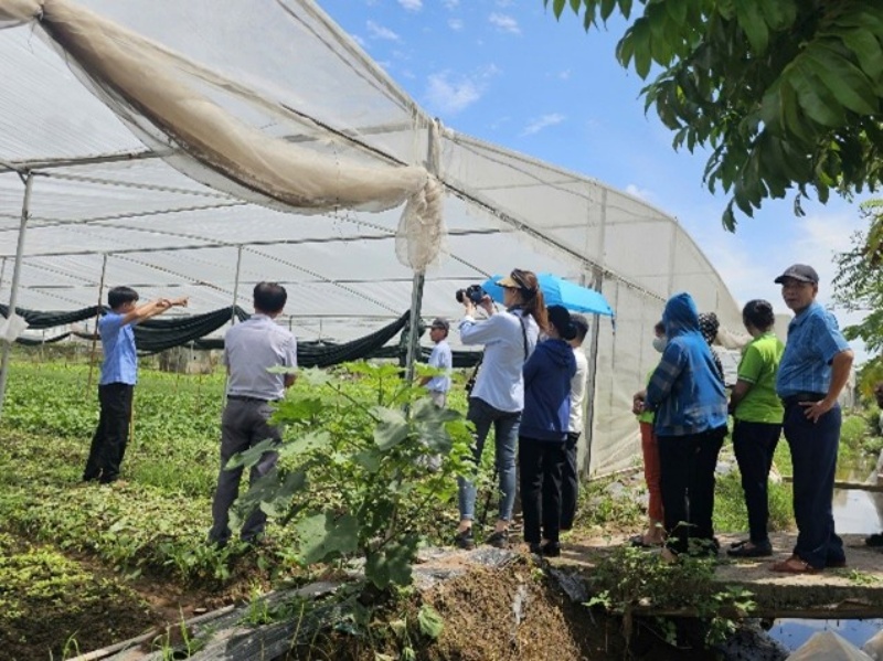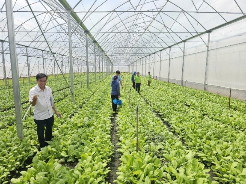 Yen Phu農協は、プロジェクトによる技術指導を通じて大きく発展し、先進的な取組を行っている対象農協の一つで、これまでも近隣農協のExposure Visitを受け入れてきました。現在では、30ha以上のViet-GAP認証農地を有し、年間40種類以上の野菜を生産しています。また、収穫物の約6割は、イオンやWin Martなど大手スーパーに供給しています。視察では、多様な販売先に対応する共同生産のしくみや、生産性向上のための栽培方法の工夫、ブランド構築や顧客対応の方法について、以下のような意見交換が行われました。