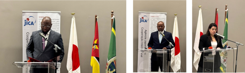(From left to right: Mr. Razaque Manhique, Mayor of Maputo City; Mr. Fernando Uache (VMTT) and Director of METRAP-Maputo; Ms. Sulimara TAKAHASHI, Deputy Representative of JICA Mozambique Office)