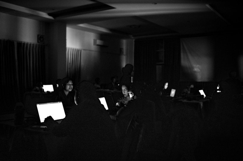 写真6 停電に気にかけることもなく最終議論を進めるメンバー達