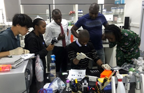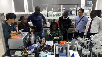 「リアルタイムPCR」につづき、SPLASHプロジェクトで整備中の実験室の目玉とも言うべき「デジタルPCR」機器を設置し、稼働トレーニングを実施しました。このデジタルPCRは、リアルタイムPCRに比べ、陽性コントロールが不要であり、さらに一度のPCRで4種類の病源体を同時に測定できるという特長があります。そのため、煩雑な陽性コントロールの準備を省けるだけでなく、複数の病源体を一括で定量することができ、作業の効率化が図れます。水や食べ物を介してヒトに感染し、下痢などの症状を起こす病原体には、細菌、ウイルス、または原虫に分類される様々な種類があります(プロジェクト・ニュースNo. 2ご参照)。SPLASHプロジェクトでは、これらの病源体が生活空間のどこに、どの程度存在しているのかを明らかにすることを目的に、デジタルPCRを活用し、多様な病原体を効率よく測定するための手法の開発を進めています。