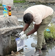 これに先立ち、ザンビア大学の社会人大学院生たちと一緒に、モニタリング地点の選定と、トライアルの水質調査を行いました。現地のWard Development Committee(WDC/プロジェクト・ニュース No.10ご参照)の方々に地域を案内してもらいながら、大学院生たちは実際に水を採取し、水質を測定するという貴重な経験をしました。この水質測定には、現在ザンビア大学で整備が進められている新しい実験室(プロジェクト・ニュース No.30ご参照)も大いに活用されます。