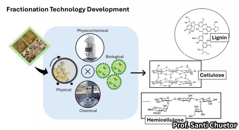 タイの廃バイオマスを原料としたバイオケミカル産業推進に寄与する原料処理・触媒反応・プロセス技術が提案される。