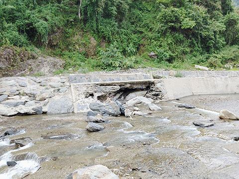 【施設】護岸道路の復旧(約 120m)、取水堰の復旧(1ヵ所)、灌漑施設の頭首工の復旧(2ヵ所)、灌漑水路の補修(幹線水路約 108m)