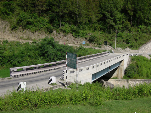 ネパールのシンズリ道路(全長160キロメートル)は、首都カトマンズと南部の穀倉地帯、さらにその先のインドを結ぶ重要な幹線道路で、日本は1996年より無償資金協力によって建設を支援しています。この協力では、第四工区の道路建設(第1期は約35キロメートル、第2期は約15キロメートル)と、大規模コーズウェイ、橋梁の建設および建設機材の調達を支援しました。これにより南部穀倉地帯から首都圏への農作物などの輸送距離および時間が大幅に短縮され、沿線地域の経済活動の活性化と貧困削減に寄与しています。