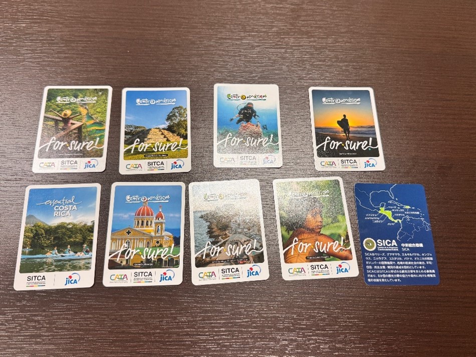 9月27日にJR大阪駅構内、28日に大阪・関西万博のポップアップステージで、中米8か国(ベリーズ、グアテマラ、エルサルバドル、ホンジュラス、ニカラグア、コスタリカ、パナマ、ドミニカ共和国)の大臣が観光カードを配布します。全部で8か国のカードとSICAカードを合わせた計9枚を集めると、特製のピンバッジがもらえます。