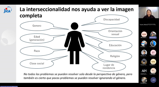 中南米地域のように多様な文化的・歴史的背景をもつ地域においても、この交差性の視点は不可欠です。「女性」を一括りにせず、立場や環境の違いによって生まれる多様なニーズや視点を捉えていく姿勢の重要性を改めて認識しました。