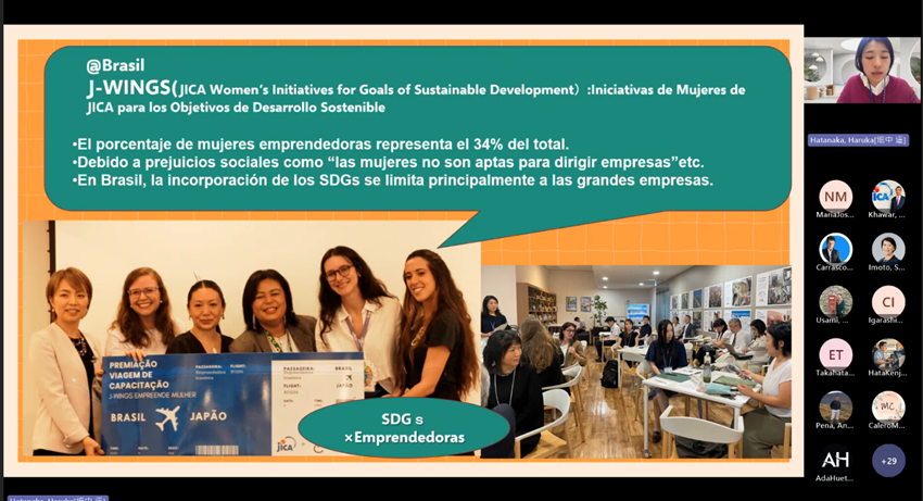J-WINGS(JICA Women's Initiatives Nikkei for Goals of Sustainable Development)についてご共有いただきました。