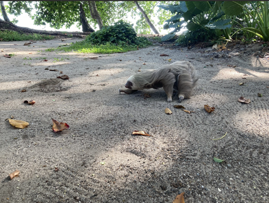 プエルトビエホの海岸沿いの道で見かけた木から落ちたナマケモノ