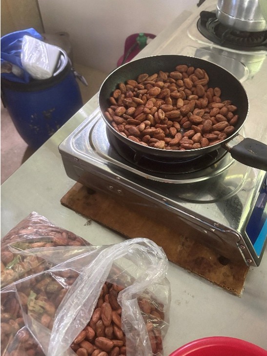 カカオ焙煎後、カカオ100%を食べましたが、割とおいしかったです。