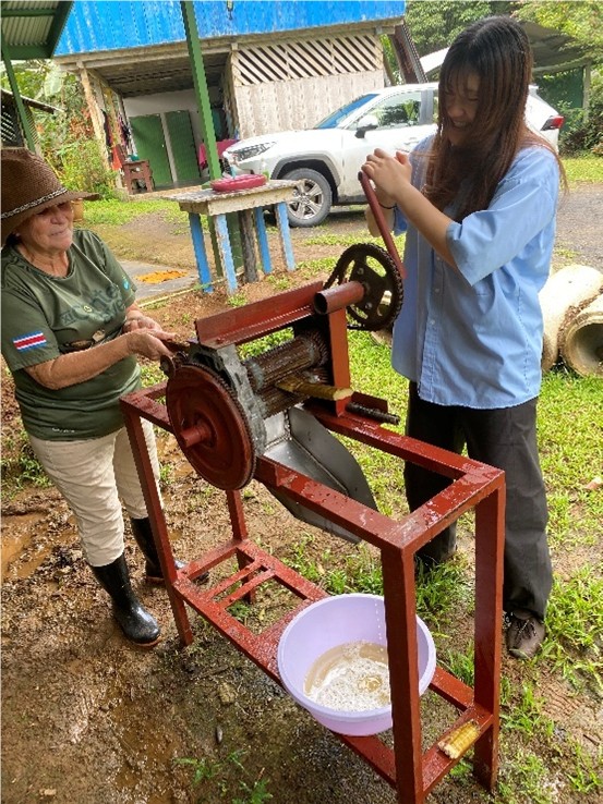 Finca La Luisaにて、サトウキビ絞り体験をさせてもらいました。かなり力が要り、大変でした。