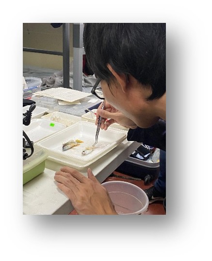 中央、魚類標本作成