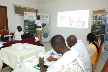 本セミナーでは、稚魚の生産、飼料(餌)の準備及び給餌方法、飼育・水質の管理、飼育記録の方法等、実践的な養殖技術に係る知識について、講義と実習を通じて学び、民間の種苗生産者や公的種苗センター関係者など、最大3回のセミナーを通じて計109人が参加しました。当日は、JICAのPREPICO2を通じて技術移転を受けたコートジボワール動物・水産資源省(Ministere des ressources animales et haluetiques:MIRAH)のカウンターパートが講義を行いました。