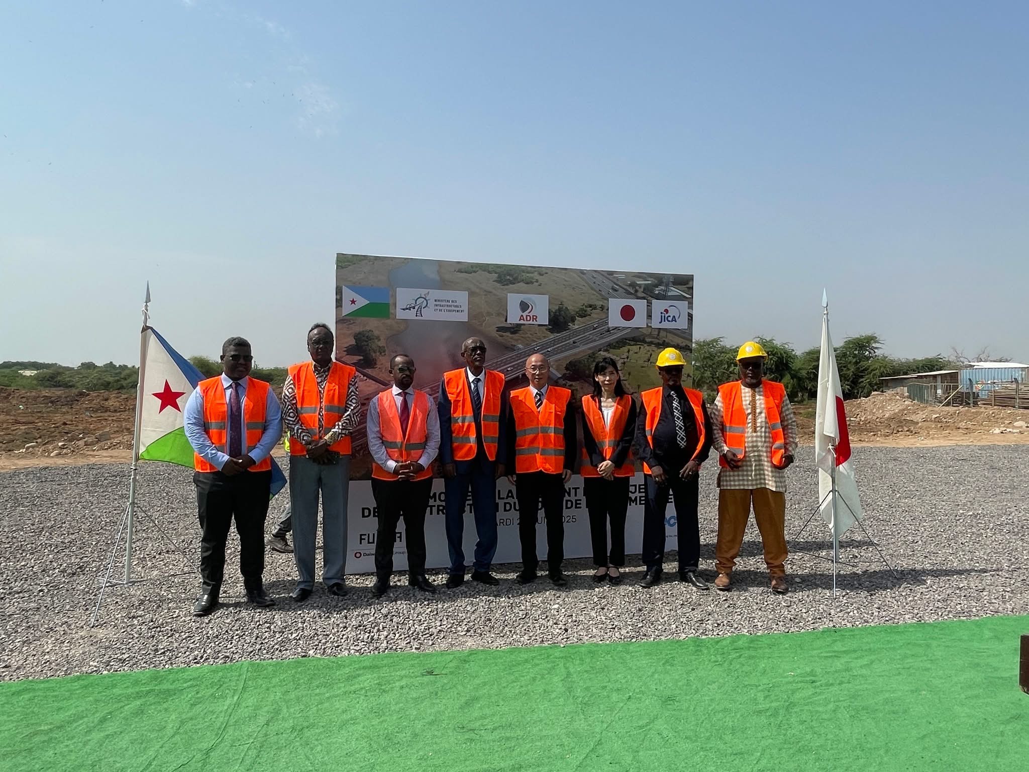 2025年6月24日、「パルマレ道路橋梁建設計画」の着工式が開催されました。式には、ハッサン・インフラ・設備大臣、原圭一駐ジブチ日本国大使、井上琴比 JICAジブチ事務所長、スバネ・サイード・イスマエル ジブチ道路公社局長など、多くの関係者が出席しました。
