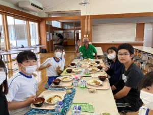 生徒と学校給食を食べる@芳賀北小学校