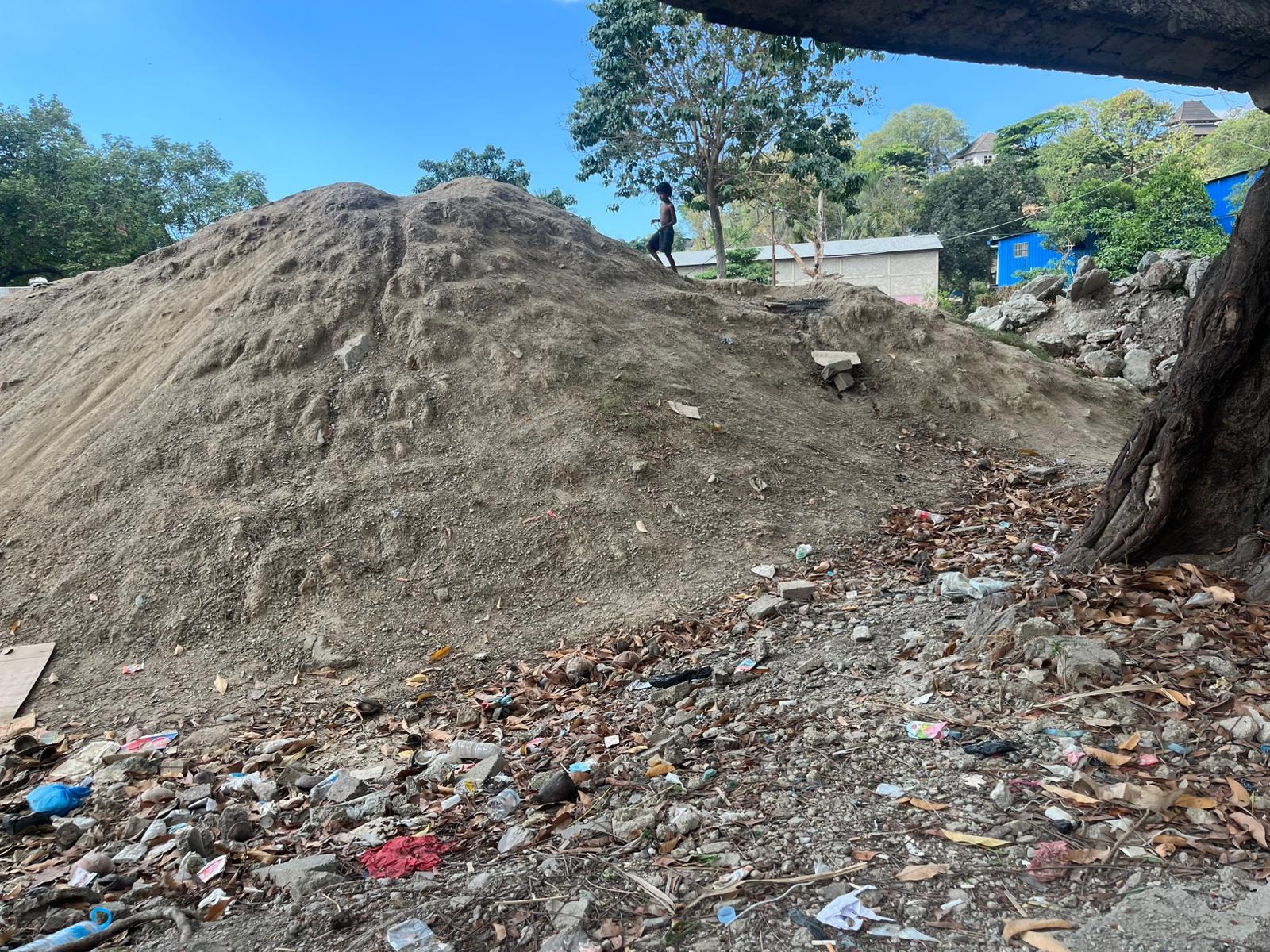 東ティモールの子どもたちと触れ合い、まず印象的だったことは、「好奇心が驚くほど強く、とてもフレンドリー」だということ。そして、授業が終われば無邪気に外を駆け回ります。緑が美しい大きな木に登ったり、はだしで元気にサッカーをしたり、凧揚げをする子どももいます。しかし、そんな彼らの足元に目を移すと、そこにはペットボトルや缶、お菓子のくずなど多くのごみが散見されます。雨が降ると施設周辺には、黒や赤茶の汚水とともに、多くのごみが流れてくることも珍しくありません。