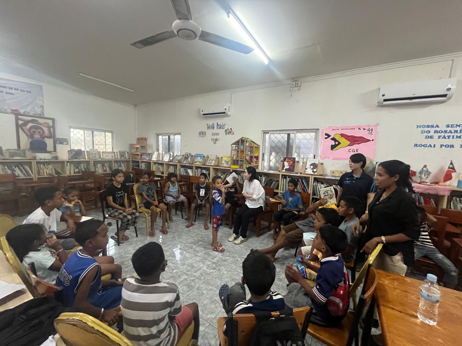東ティモールは子どもの数が非常に多く、多くの小学校は2部制となっており、学習時間は正味3時間。CQRに来ている子どもたちは、学校に行く前、もしくは行った後に、ポルトガル語や算数、英語、日本語、絵などを学びにCQRに来ています。いわば学童のようなものです。