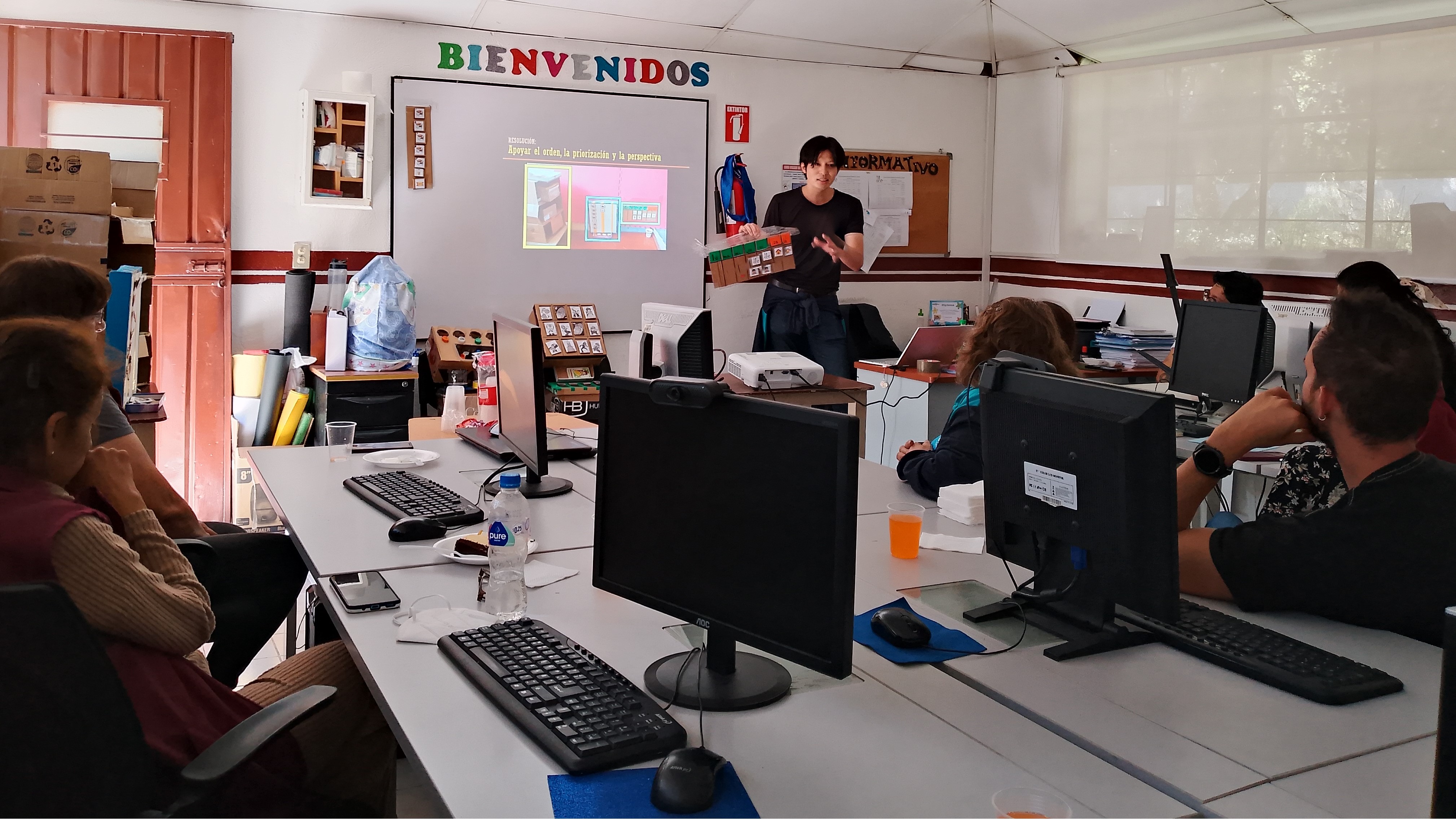 対象生徒については、学校内で特に行動課題が顕著にみられる生徒を先生たちに選んでもらいました。各生徒には1日30分から2時間ほど毎日教室に来てもらい、そこでTEACCHプログラム(ノースカロライナ州の自閉スペクトラム症のある人たちへの公的支援プログラム)や応用行動分析等のアイデアを活用した個別支援を実践します。最終的にそれらの実践を先生たちに直接見てもらい、色々と学んでいただくと同時に教室に支援アイデアを取り入れて貰おうという作戦です。