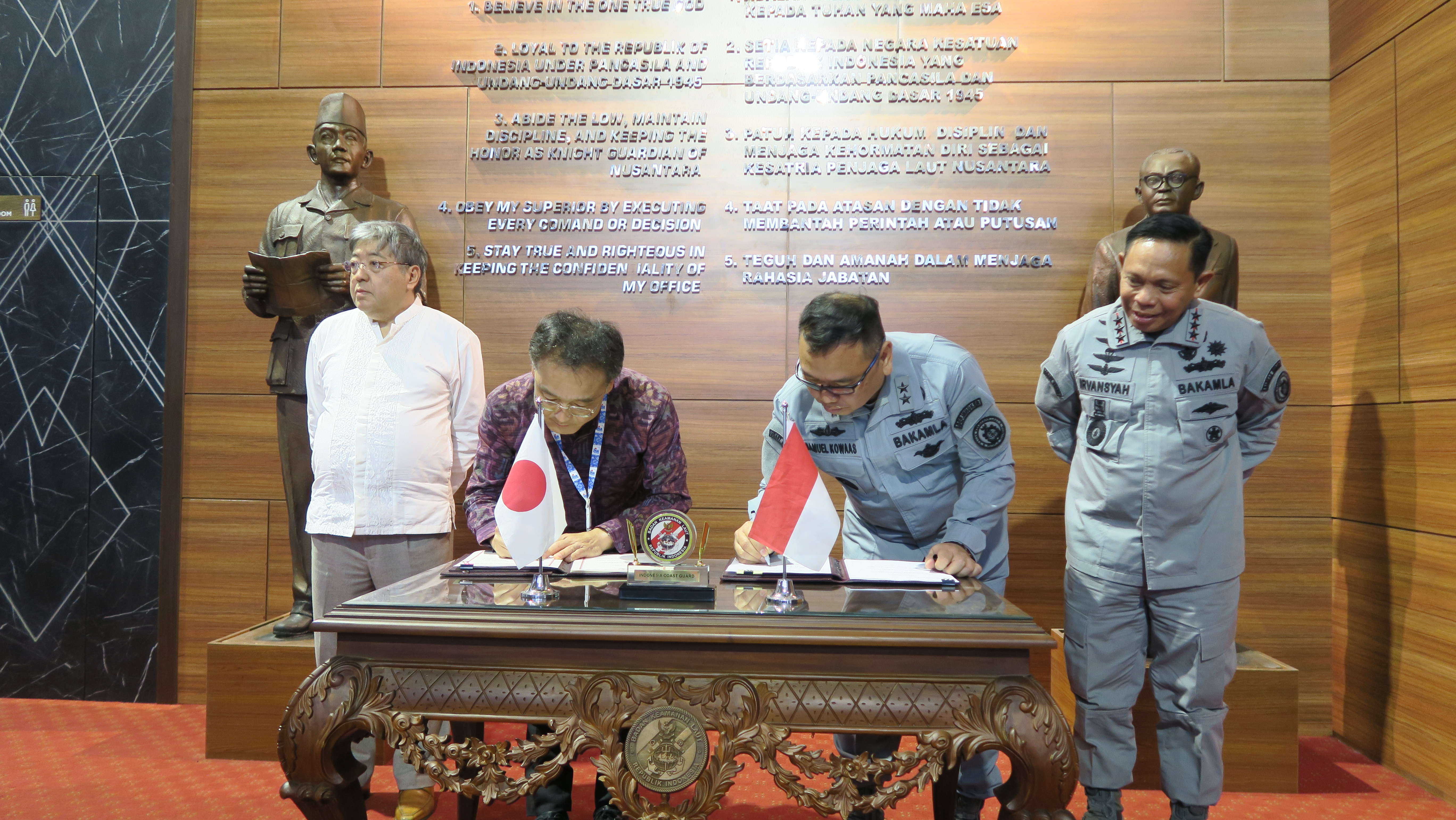 (左から 正木駐インドネシア大使 、 安井JICAインドネシア事務所長、 サミュエル・コワス海上保安機構次長 、イルファンシャ海上保安機構長官。